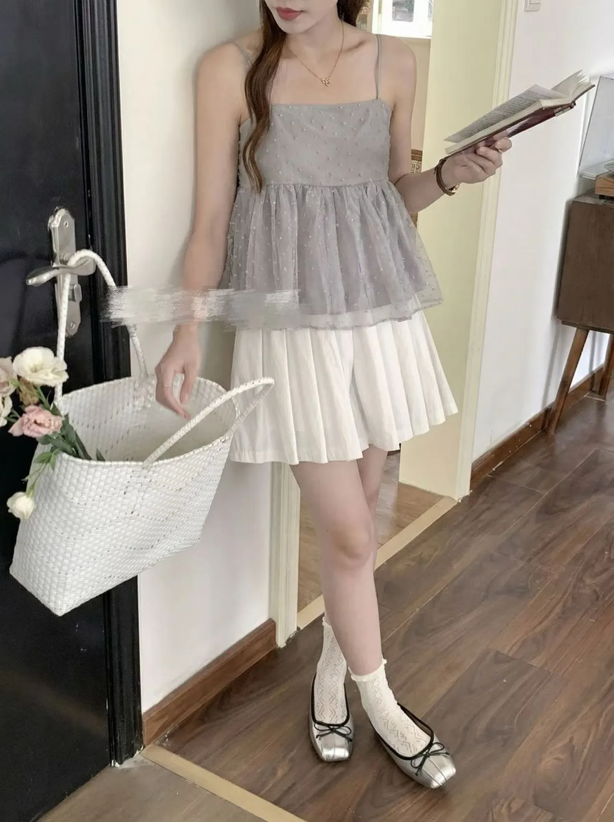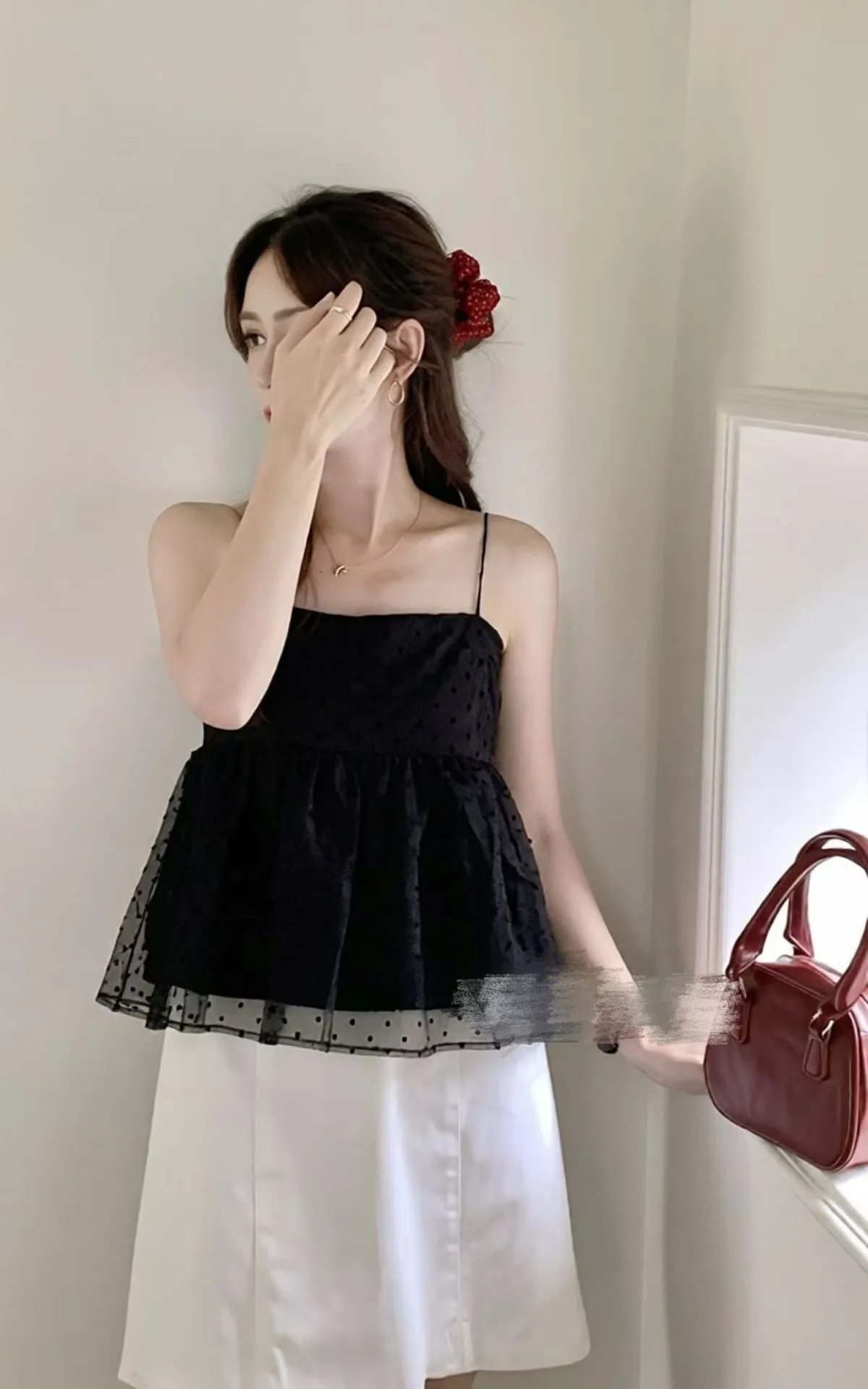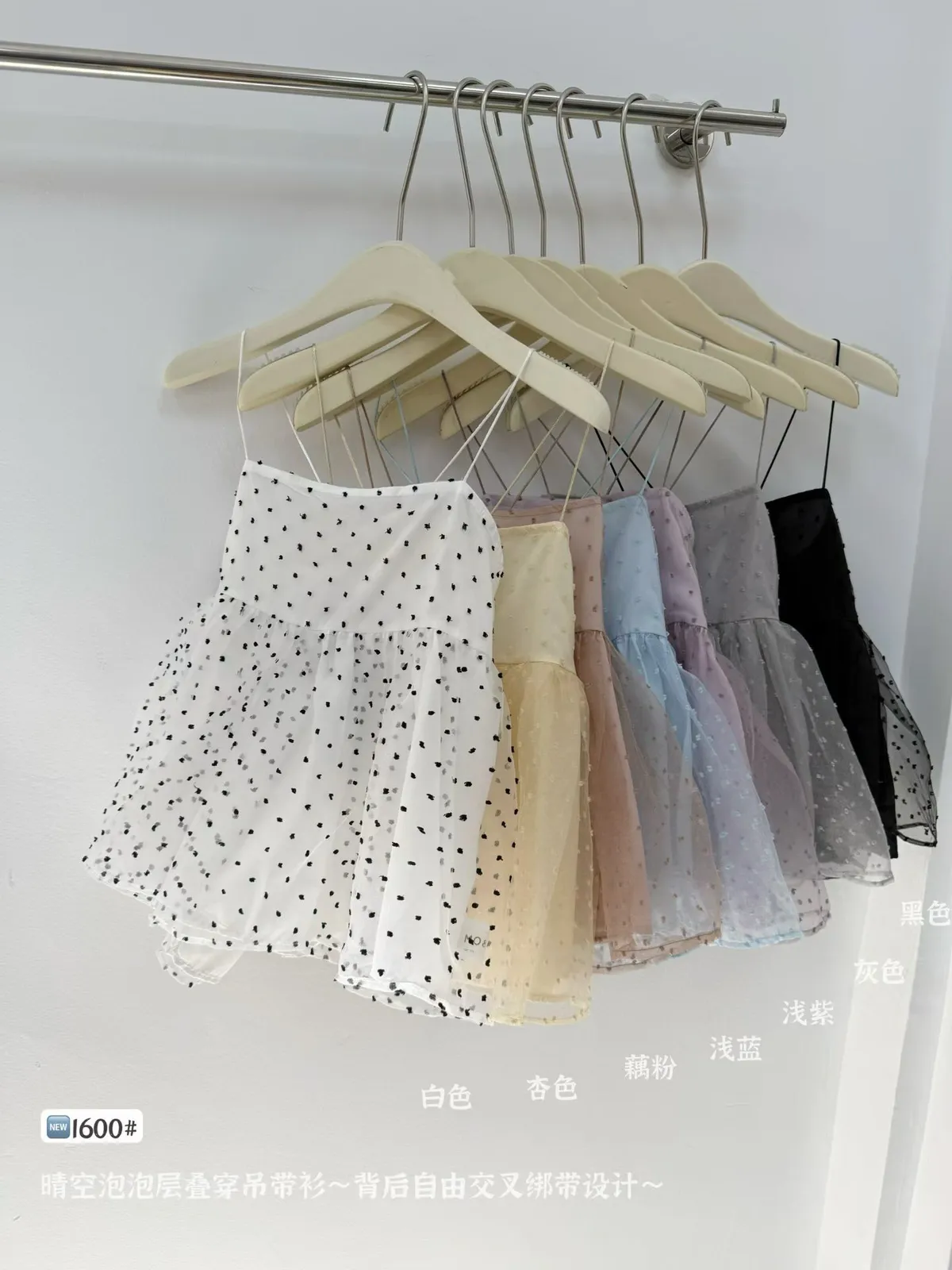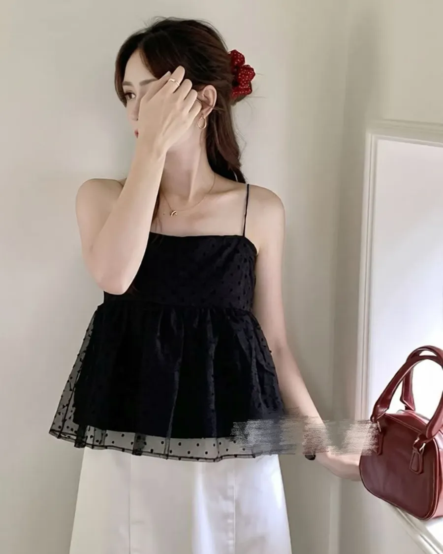 晴空泡泡層疊穿甜美點點吊帶衫