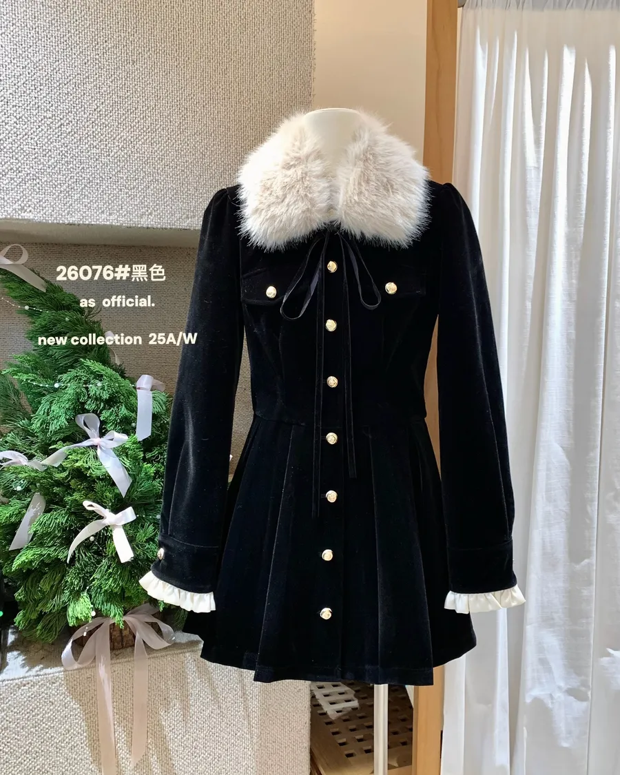 名媛貴氣小香風 絲絨收腰洋裝