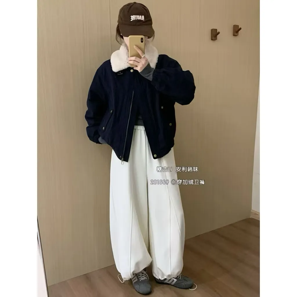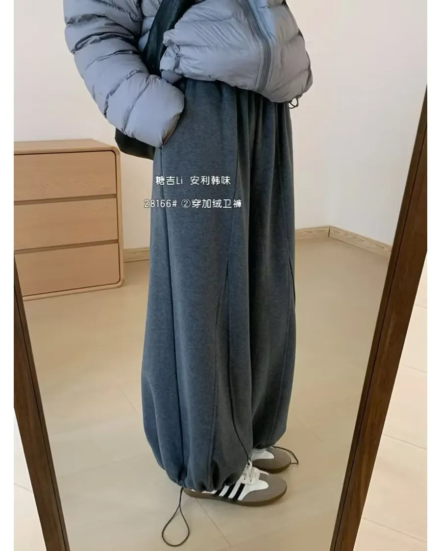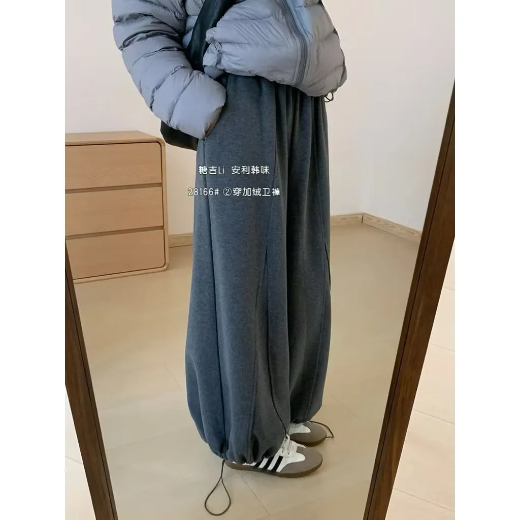 現貨 超保暖加絨加厚兩穿百搭鬆緊腰棉褲氣球褲