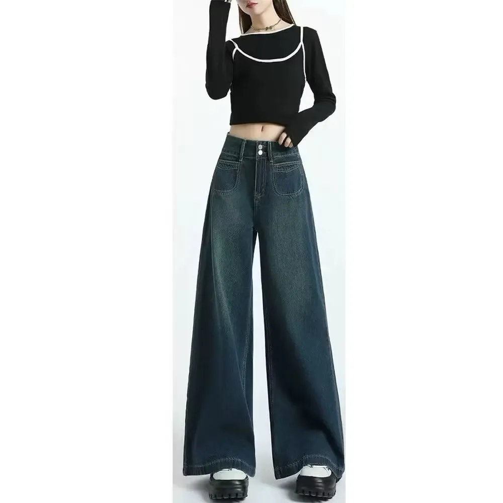 現貨 正韓FSY 肉肉腿福音 高腰顯瘦寬直筒褲牛仔褲