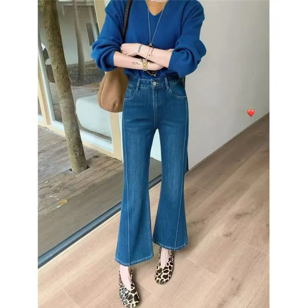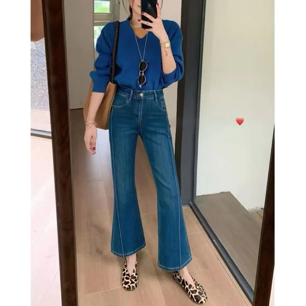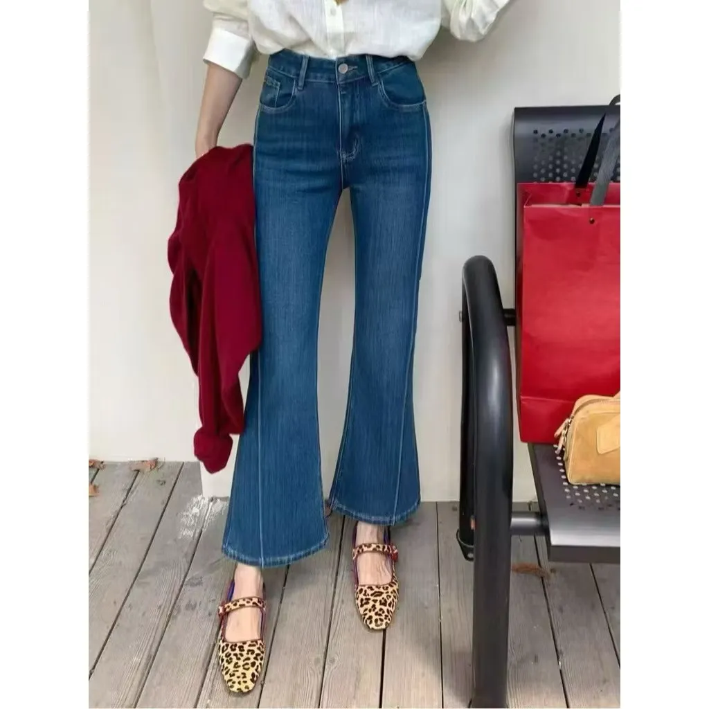 現貨 正韓FSY 小個子專屬 高腰顯瘦氣質喇叭褲牛仔褲