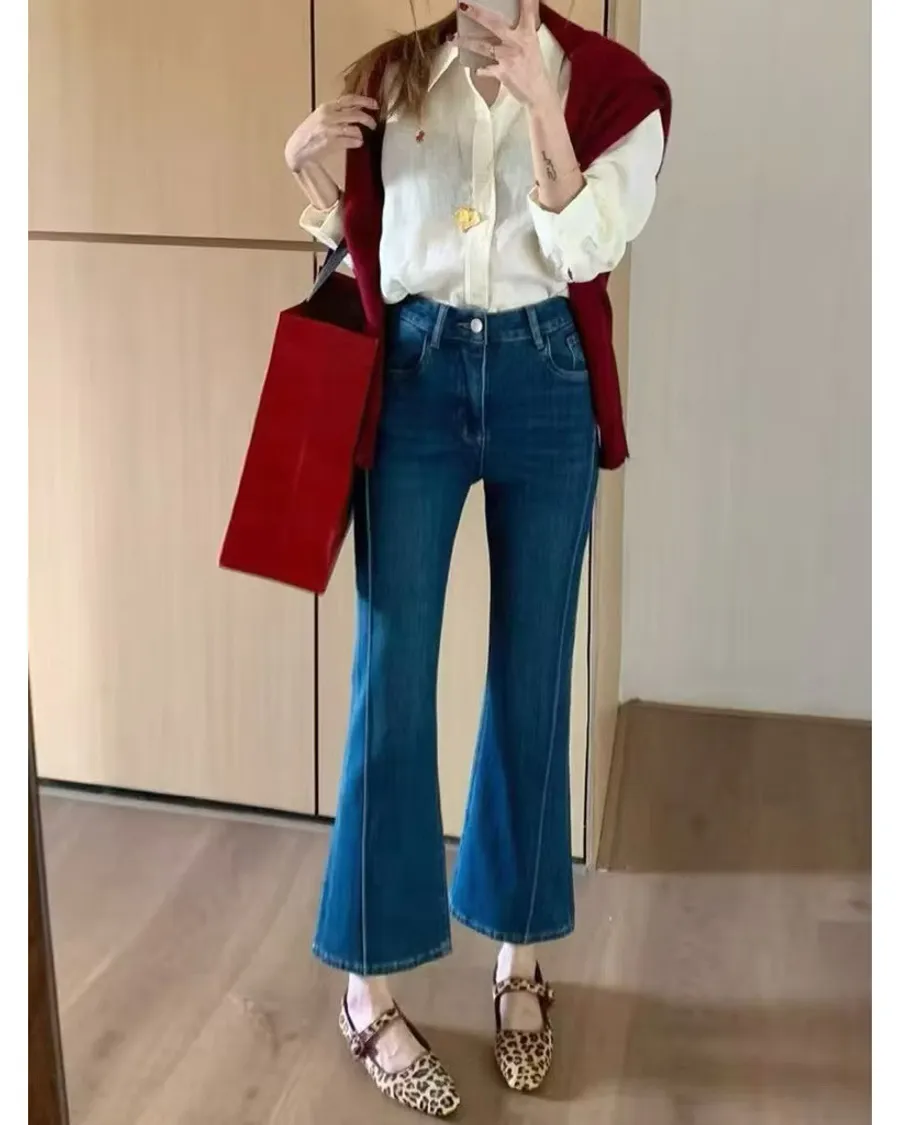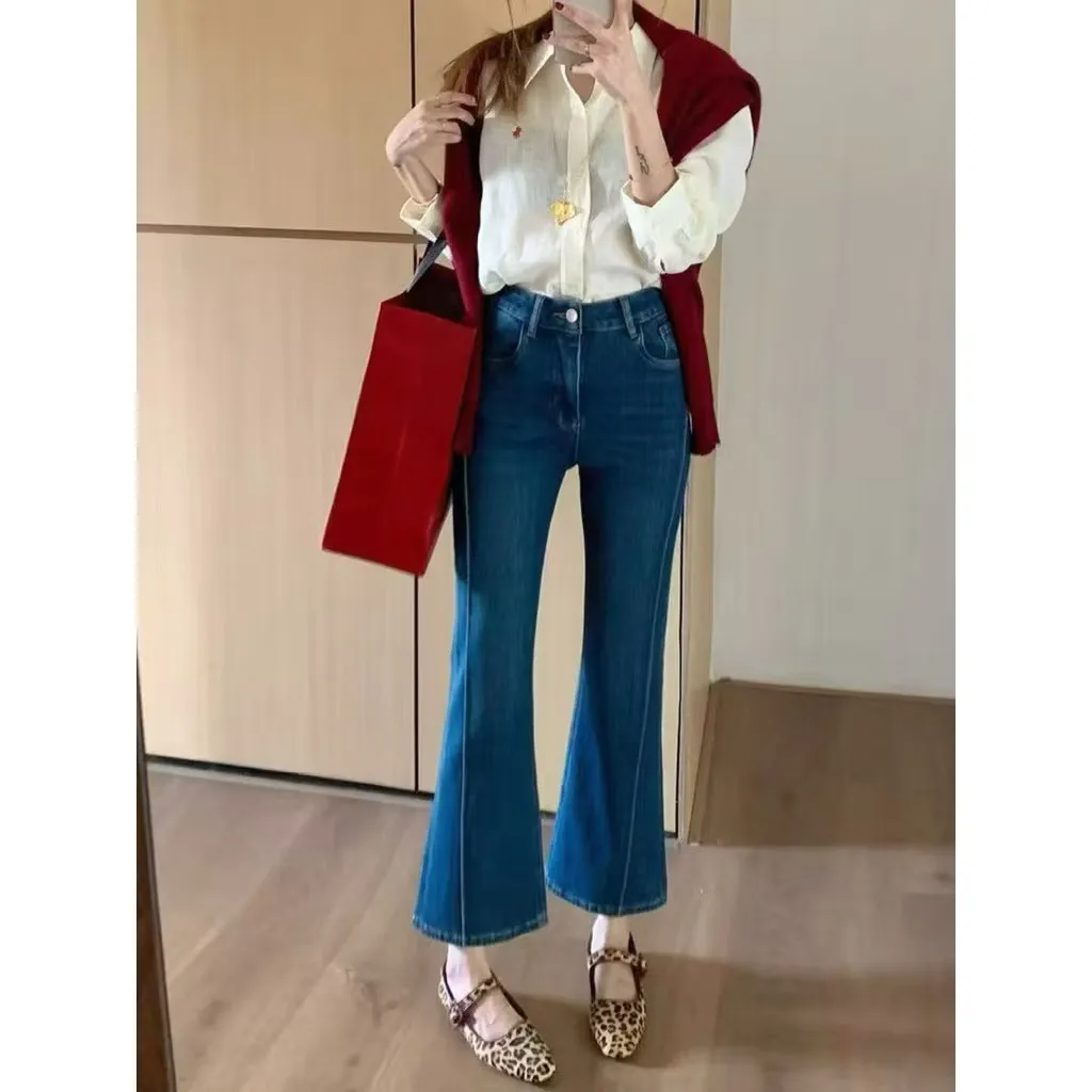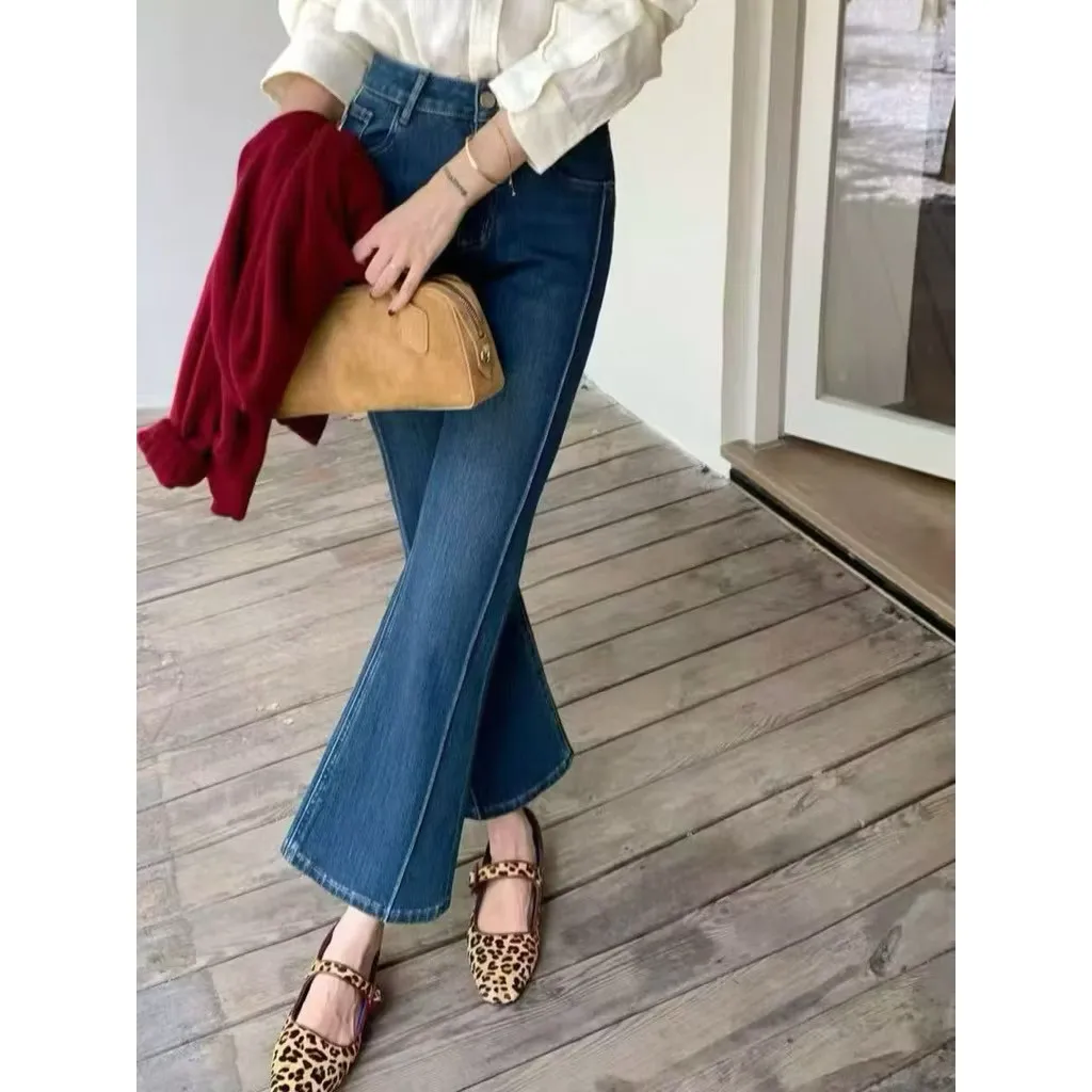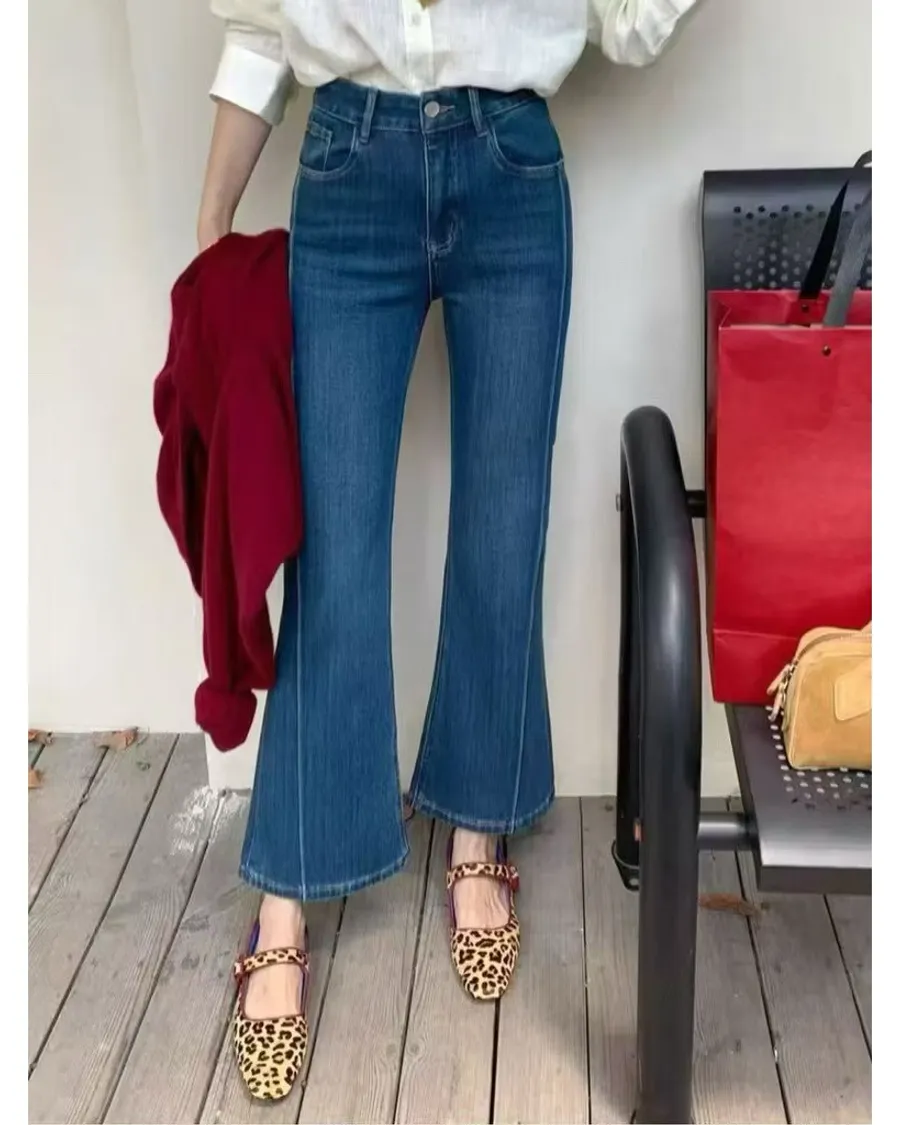 現貨 正韓FSY 小個子專屬 高腰顯瘦氣質喇叭褲牛仔褲