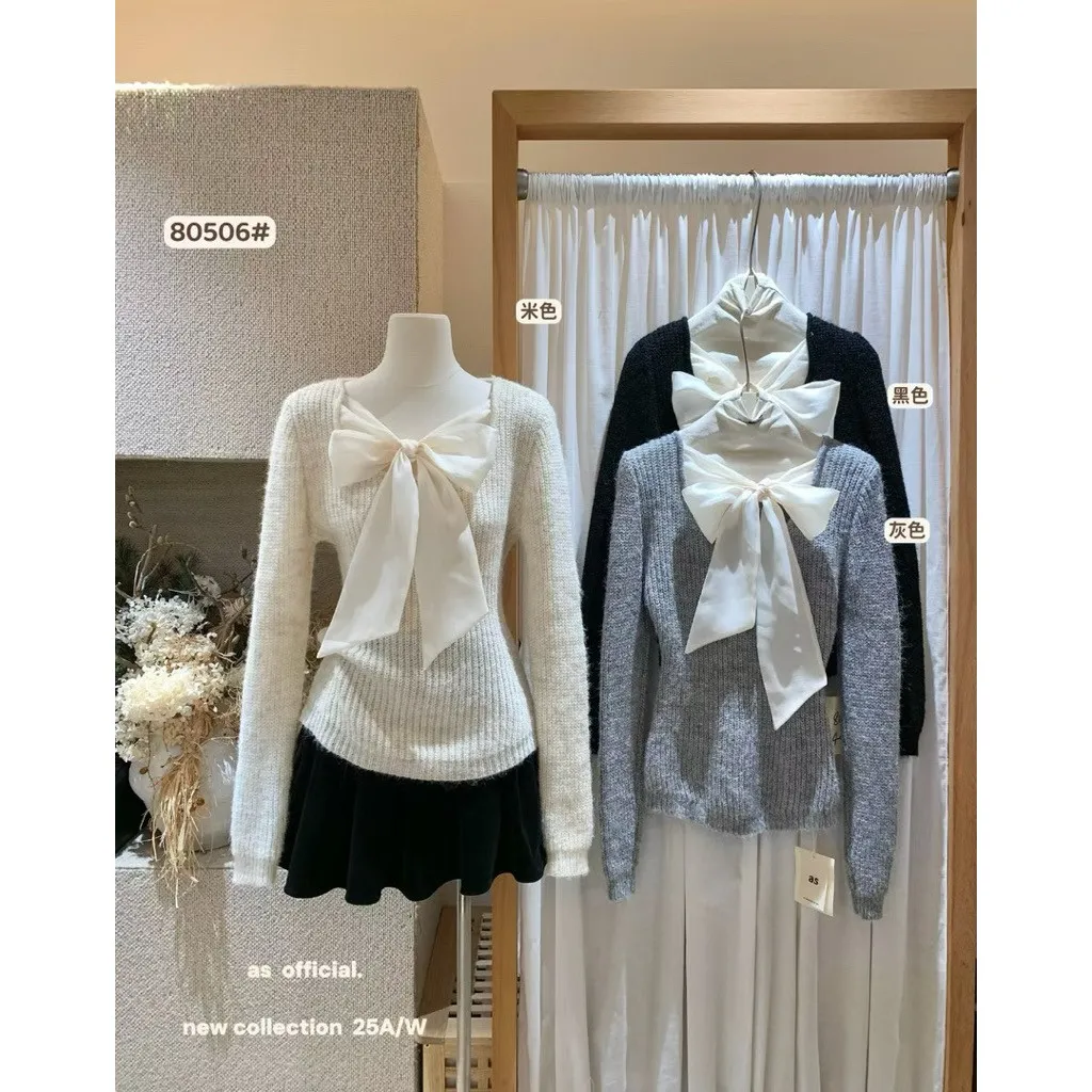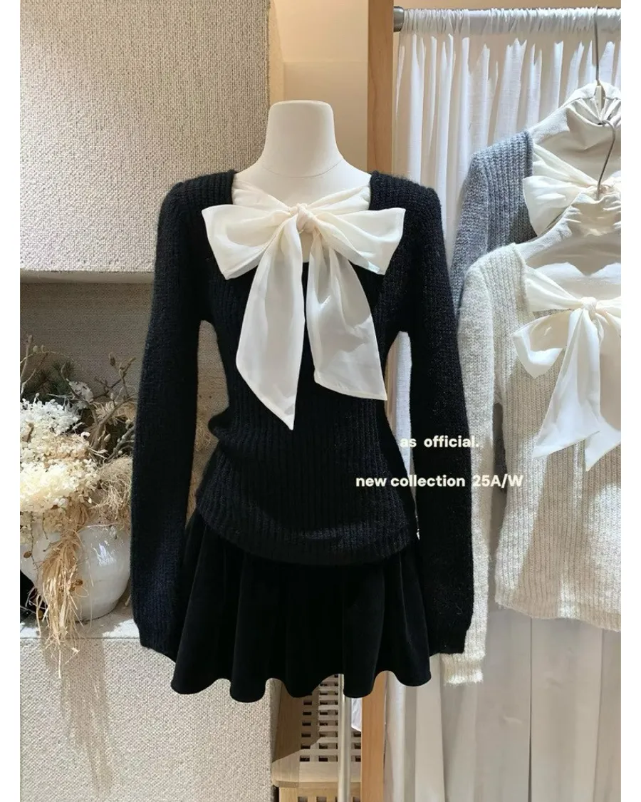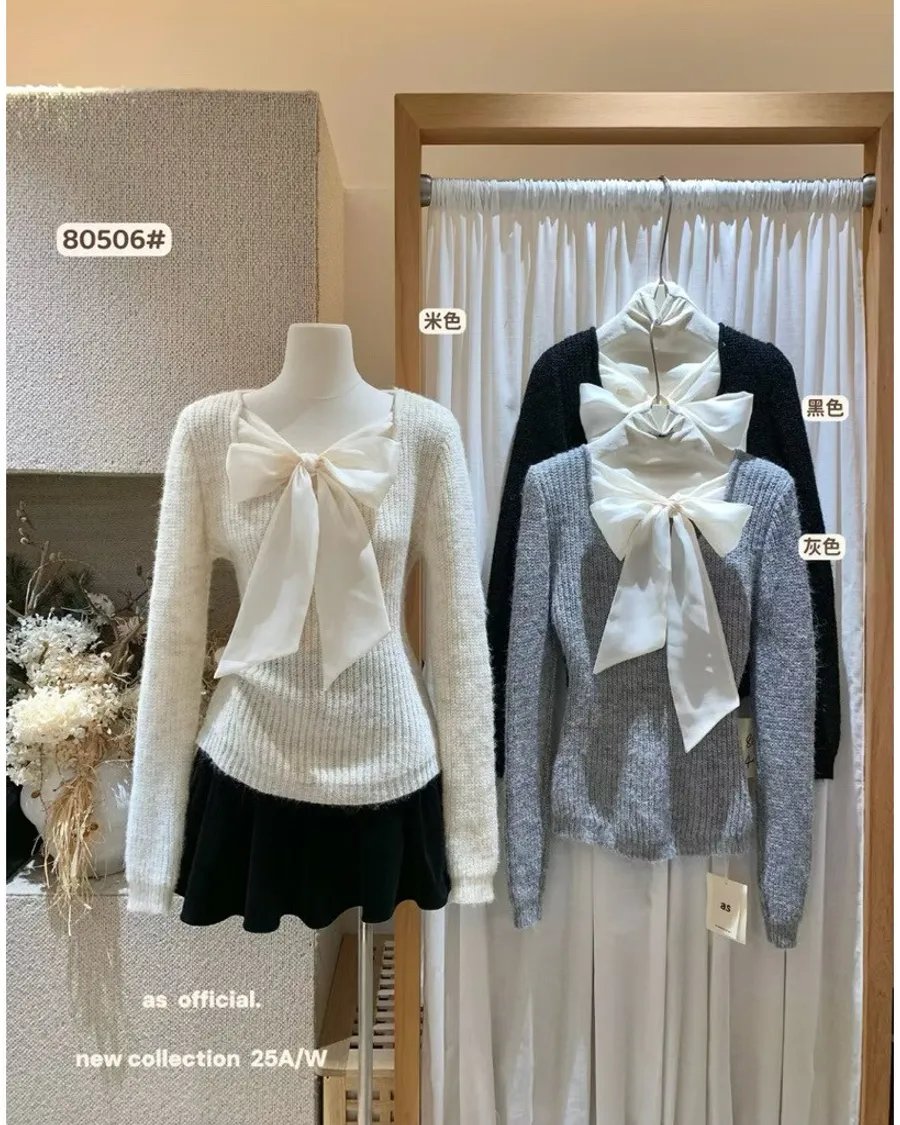 現貨 甜美氣質蝴蝶結綁帶針織衫*3色